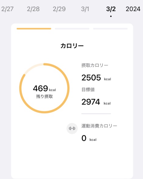 増量期vol.1 2日目 筋トレ日記 X Facebook はてブ Pocket LINE コピー 2024.03.032024.03.06 トレーニング 食事 目標の2500kcalは達成! ですが、タンパク質がイマイチな気がする、、 僕の体重が約60キロなので、理想は120gの タンパク質を摂取したいところ ハンバーグ食べ過ぎが原因だ、、 Follow me! FacebookXHatenaPocketCopy