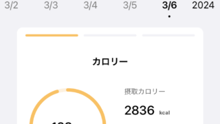 筋トレ日記 増量期vol.1 2日目 トレーニング 食事 目標の2500kcalは達成! ですが、タンパク質がイマイチな気がする、、 僕の体重が約60キロなので、理想は120gの タンパク質を摂取したいところ ハンバーグ食べ過ぎが原因だ、、 2024.03.03 筋トレ日記